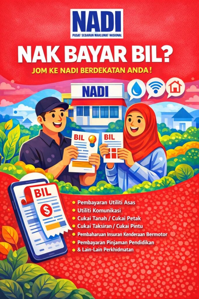 Kini anda boleh membuat PEMBAYARAN BIL dengan lebih mudah, cepat dan selamat melalui perkhidmatan POS ONLINE @ NADI berdekatan anda.